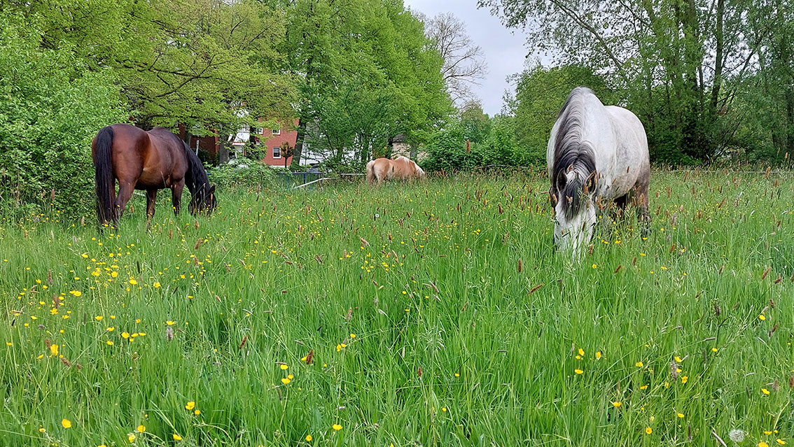 Der Erhalt der Natur und das ökologische Gleichgewicht liegen uns am Herzen. Hier wird alles selbst gemacht: Wir produzieren unser Heu für die Pferde auf den umliegenden Wiesenflächen und haben so die Qualität selbst im Blick, den Überschuss verkaufen wir zu fairen Preisen an bekannte Bremer Therapiehöfe oder Landwirte.
